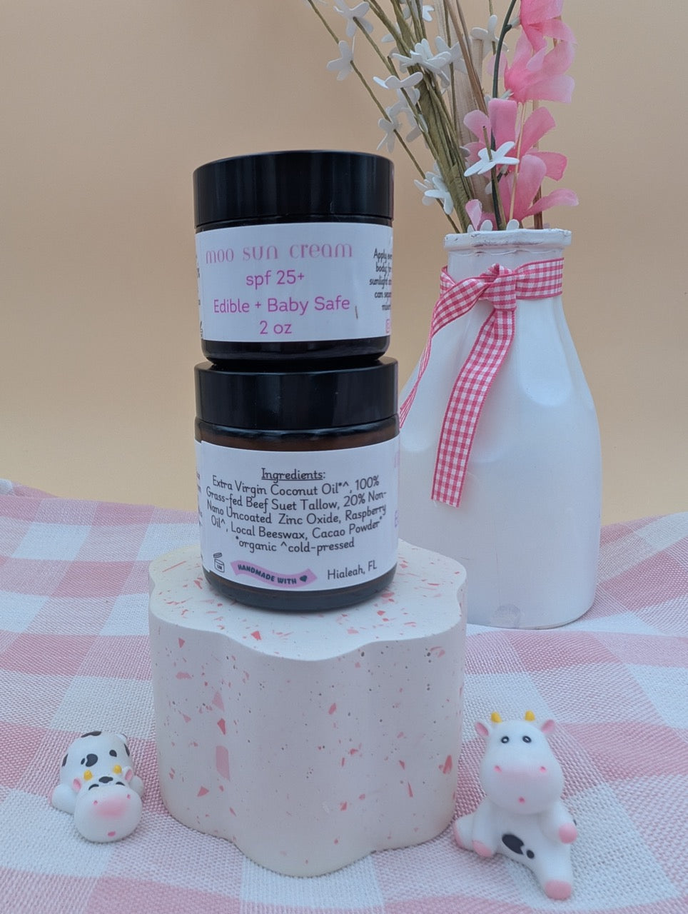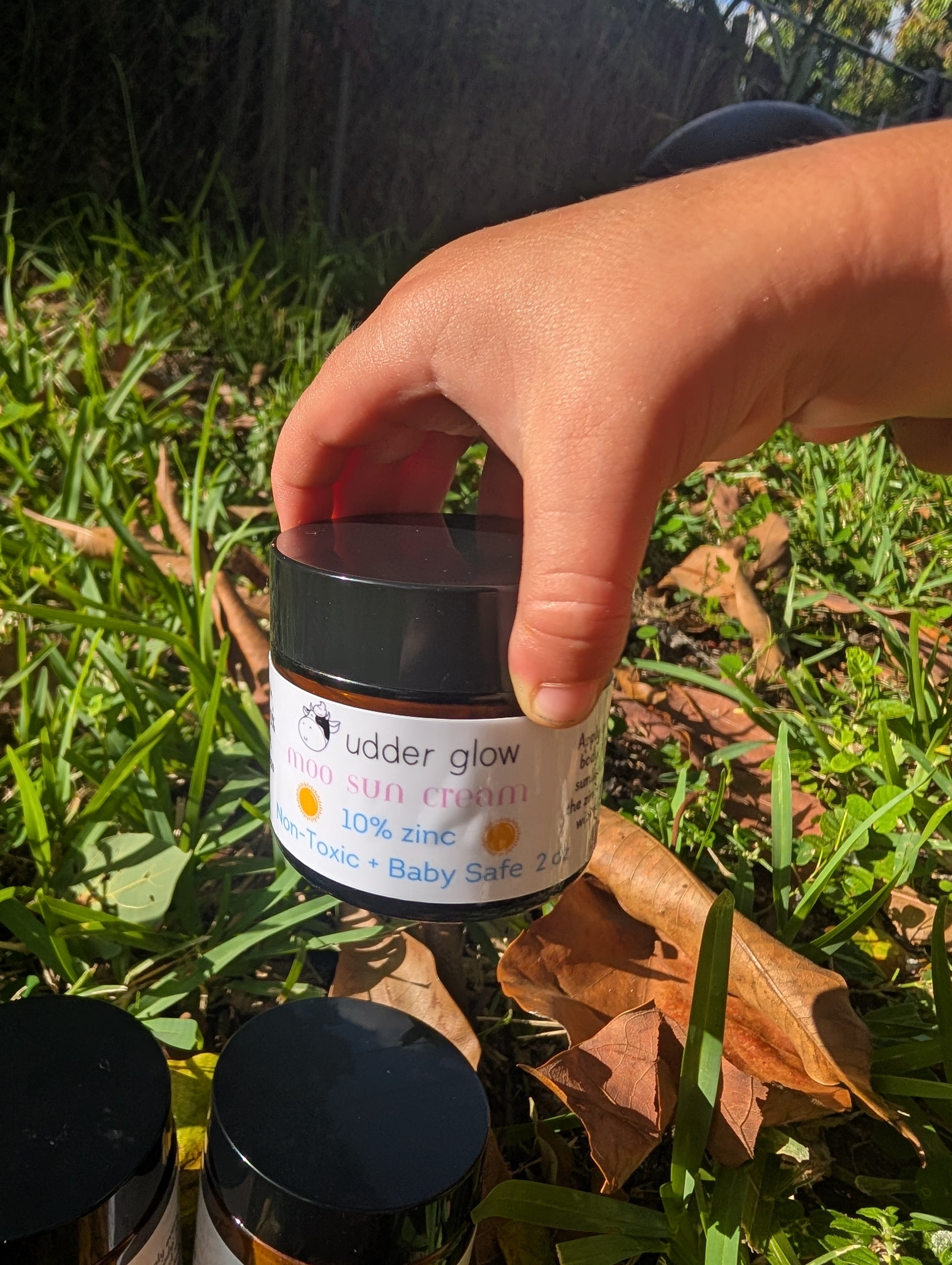 But if you find yourself needing some extra protection grab some of this nourishing Moo Sun Cream. Made from non-toxic, organic ingredients that can actually be consumed! Coconut oil, tallow and raspberry oil have natural spf boosting this cream even more.